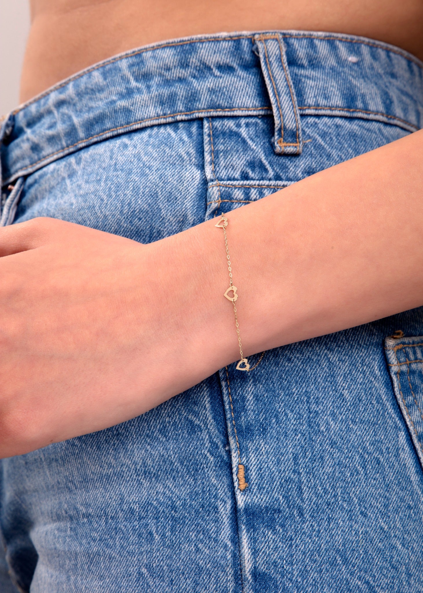 14K Gold Bracelet Featuring Open Heart Motifs – Dainty Linked Love Charm Design