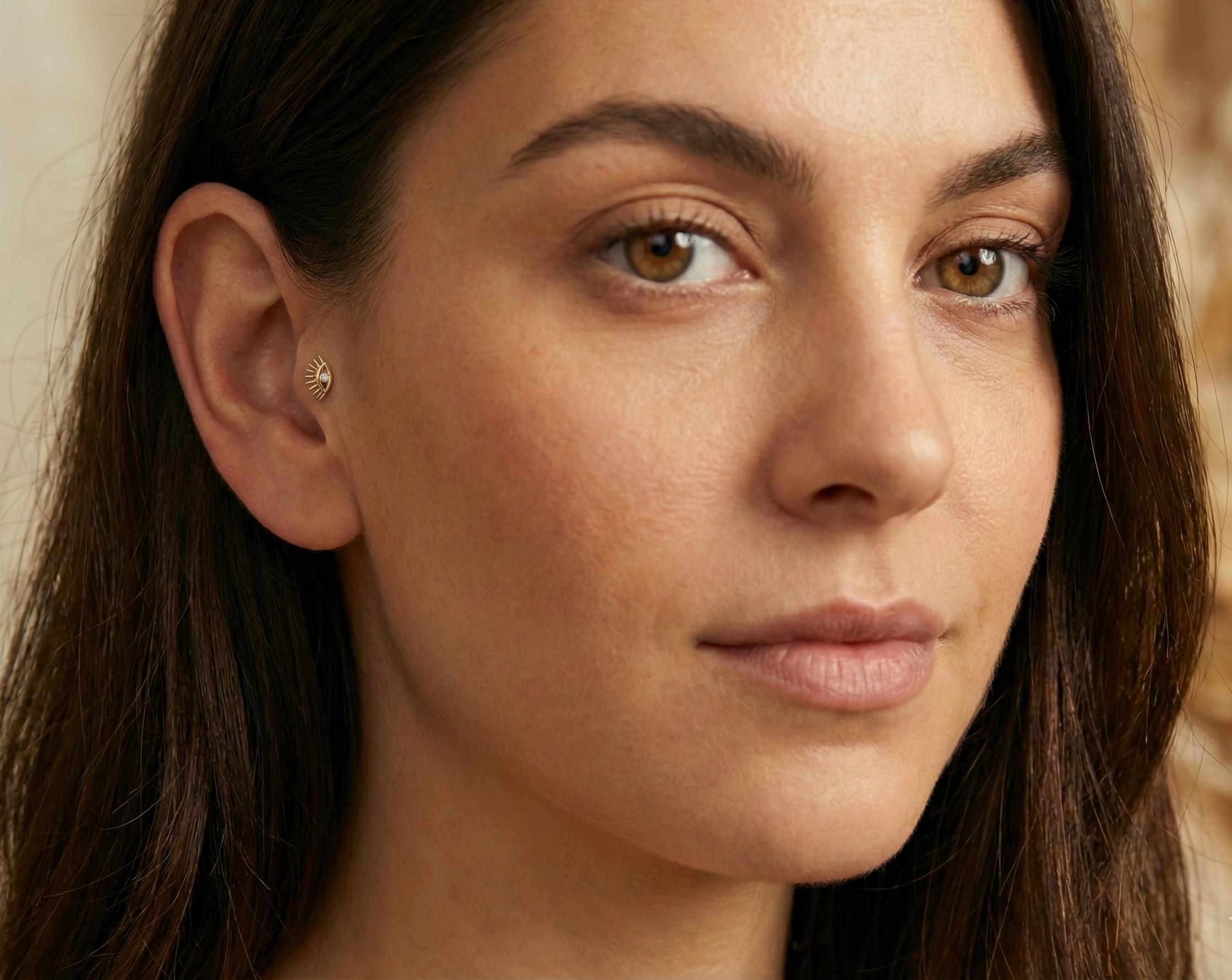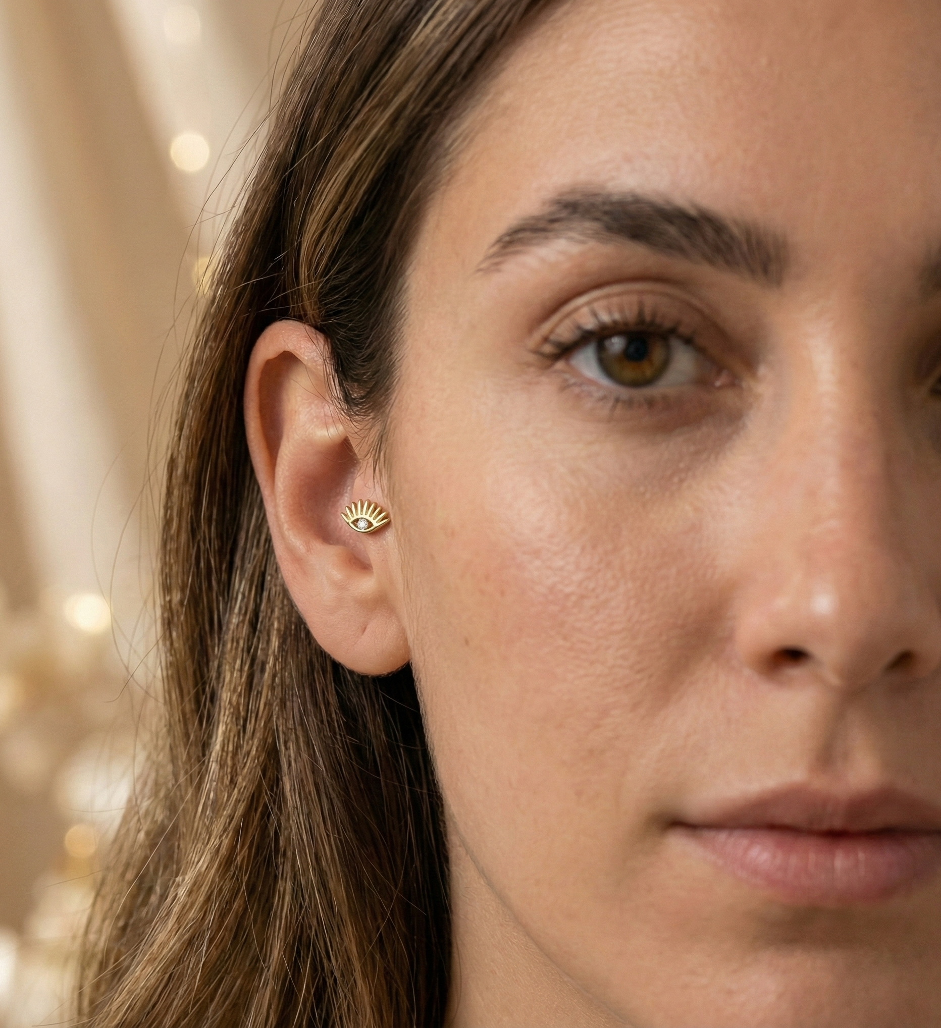 14K Gold Protective Eye Tragus Stud – Flat Back Symbolic Piercing