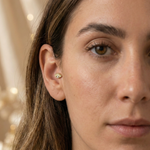 This striking eye-shaped tragus stud, crafted from solid 14K gold, is more than a piercing—it’s a symbol of intuition and protection. A central AA zircon adds a subtle sparkle while the flat back design ensures all-day comfort. Ideal for tragus, helix, or cartilage piercings, it’s the perfect mix of meaning and minimalism. Add it to your ear stack for both style and spiritual strength.