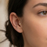 Make a statement with our 14K solid gold skull tragus stud earring, a perfect blend of minimalist design and bold symbolism. This fixed, flat-back stud is crafted for comfort, making it ideal for tragus, helix, or other cartilage piercings. The sleek skull shape, adorned with sparkling crystal eyes, offers a unique twist on traditional cartilage jewelry, appealing to those seeking a distinctive yet subtle accessory. Designed with the modern, style-conscious individual in mind, this minimalist cartilage jewelry piece is made from high-quality 14K solid gold, ensuring durability and a lasting shine. Whether you're curating an ear stack or looking for a standalone piece, this 14K gold skull earring adds a touch of sophistication and edge to your look.