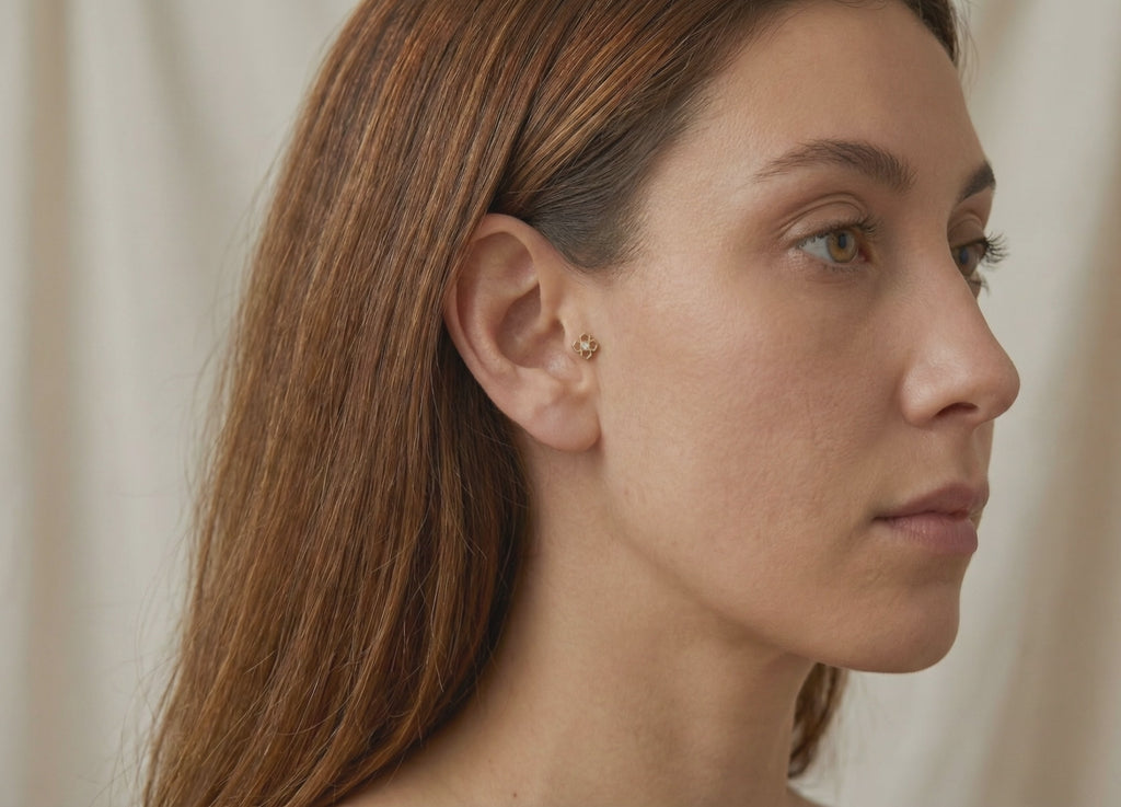 Shop 14K solid gold stud earrings—flatback & push-back. Hypoallergenic for sensitive ears; dainty, everyday studs for stacking.