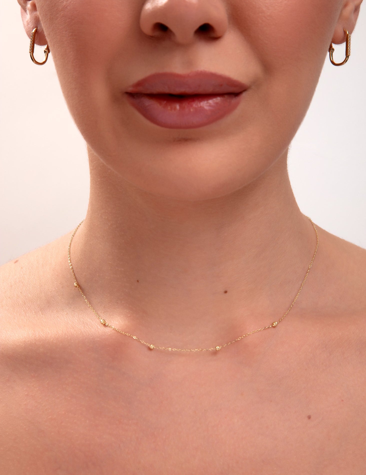 14K Solid Gold Clover Bead Necklace – Minimalist Lucky Charm Choker