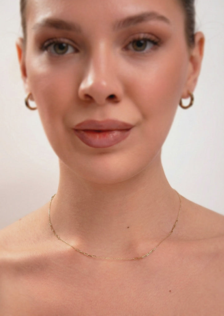 14K Gold Paperclip Chain Necklace – Modern Minimalist Statement Piece