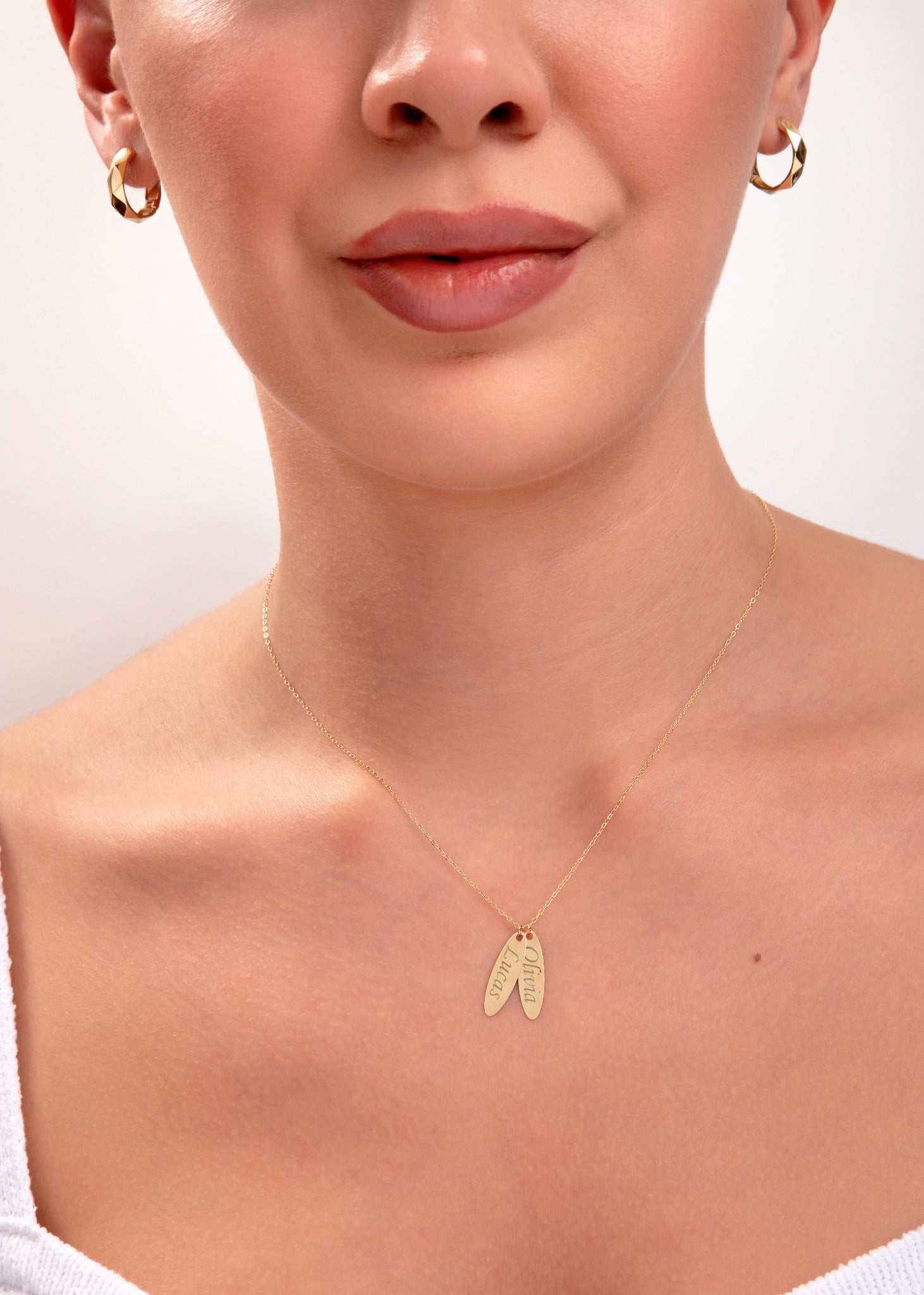 Turn memories into timeless elegance with our 14K gold personalized name necklace. This heartfelt piece features two sleek tag-shaped pendants, each delicately engraved with the name of someone special — whether it’s your children, partner, or a meaningful word. Handcrafted from real solid gold, it’s a cherished keepsake and an ideal gift for mom, birthdays, or anniversaries. Layer it or wear it solo — this piece speaks your story with style.