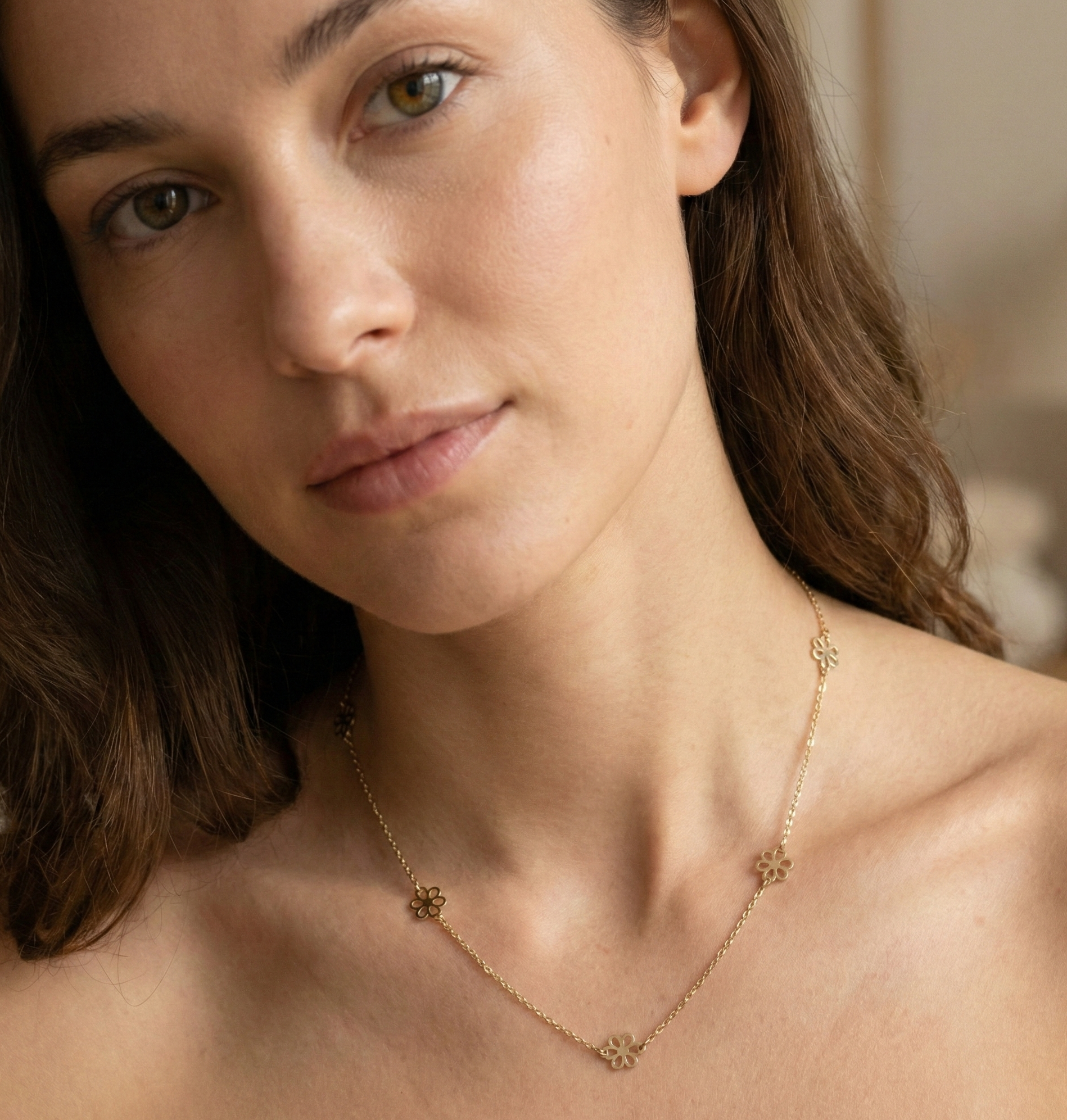 14K Gold Hollow Flower Necklace – Dainty Floral Pendant Chain - (Kadın Model Yok)