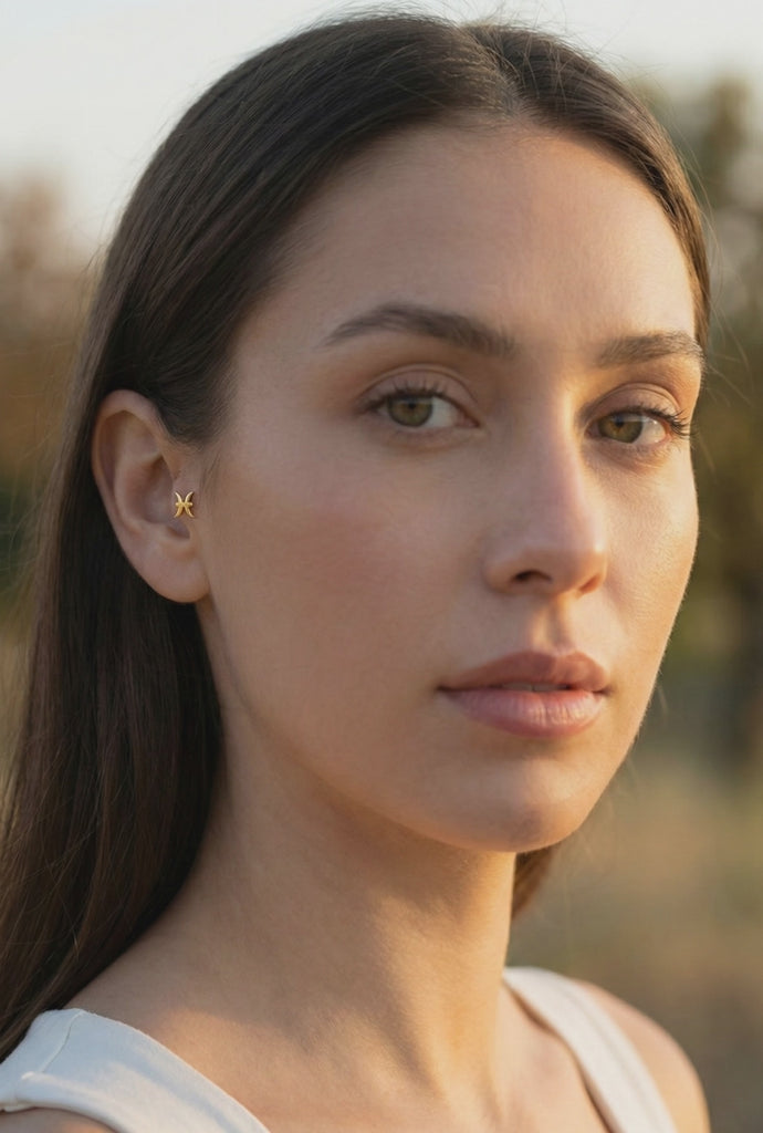 14K Gold Pisces Zodiac Tragus Stud – Flat Back Astrology Piercing