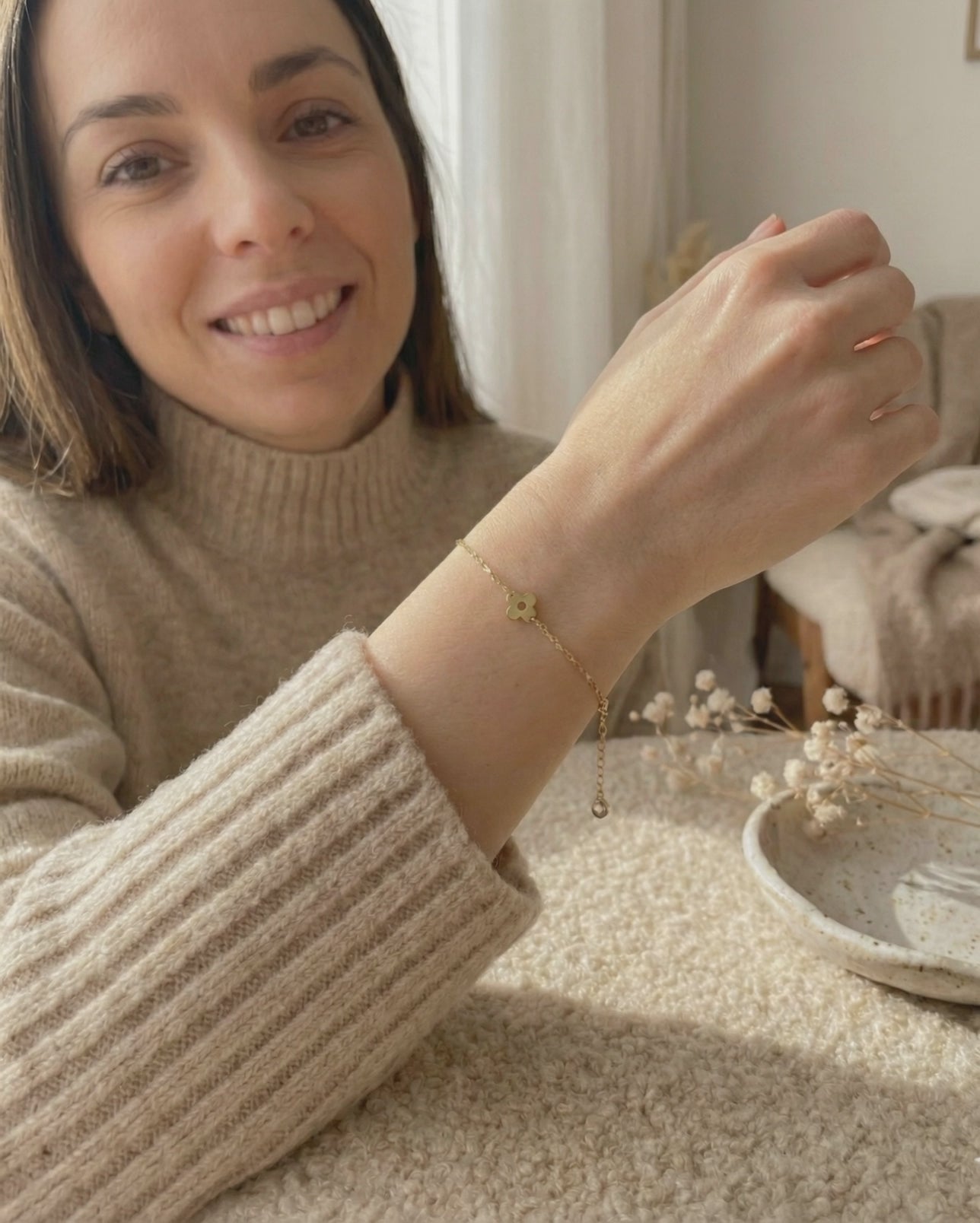Shine every day with our gold flower bracelet collection. Minimalist 14K solid gold designs made to be worn, stacked, and loved for a lifetime.