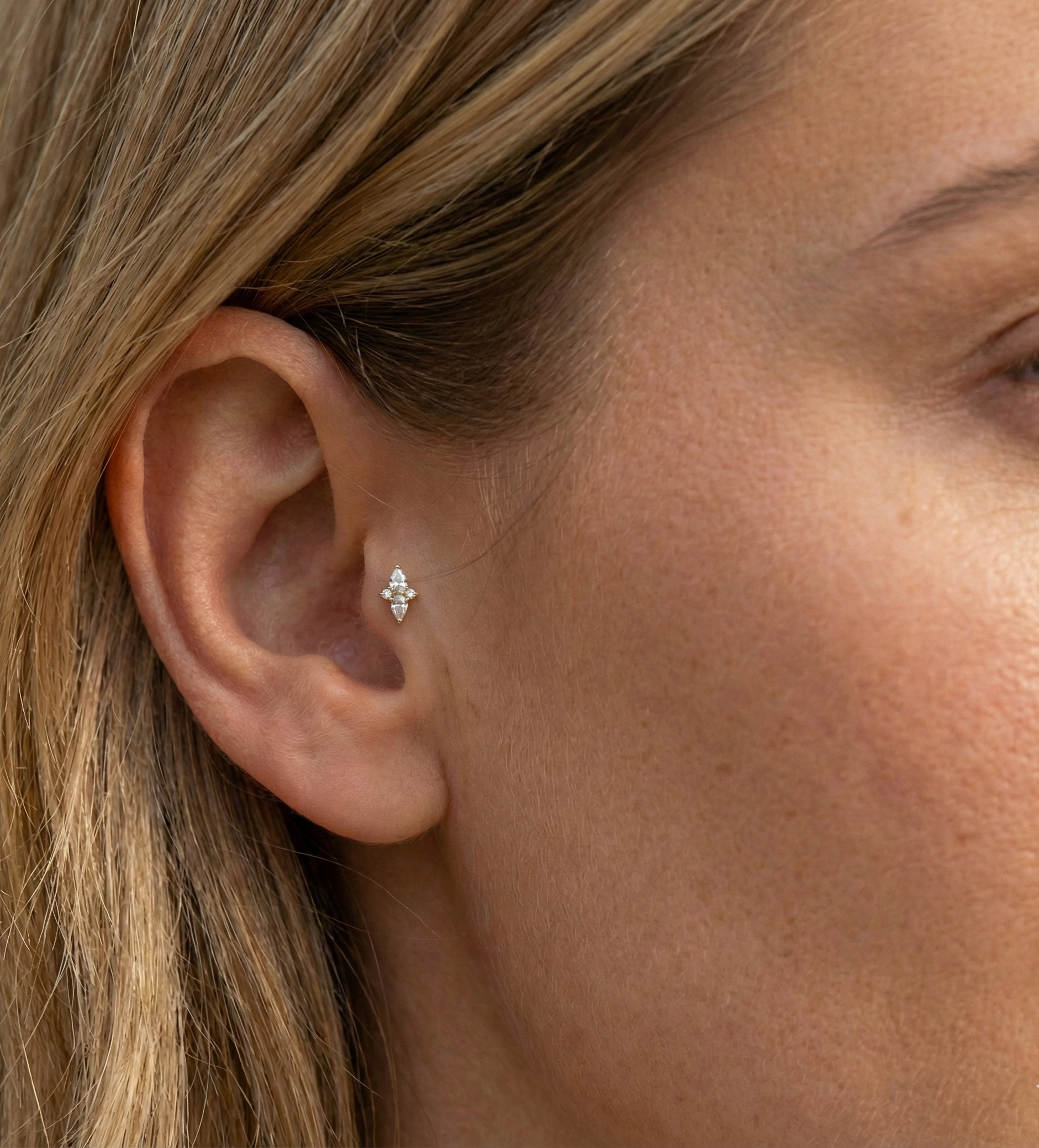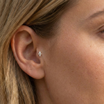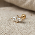 Doté de deux pierres en forme de poire en miroir, ce clou de tragus en or 14 carats est une délicate déclaration de symétrie et d'éclat, conçu pour un style d'oreille raffiné.
