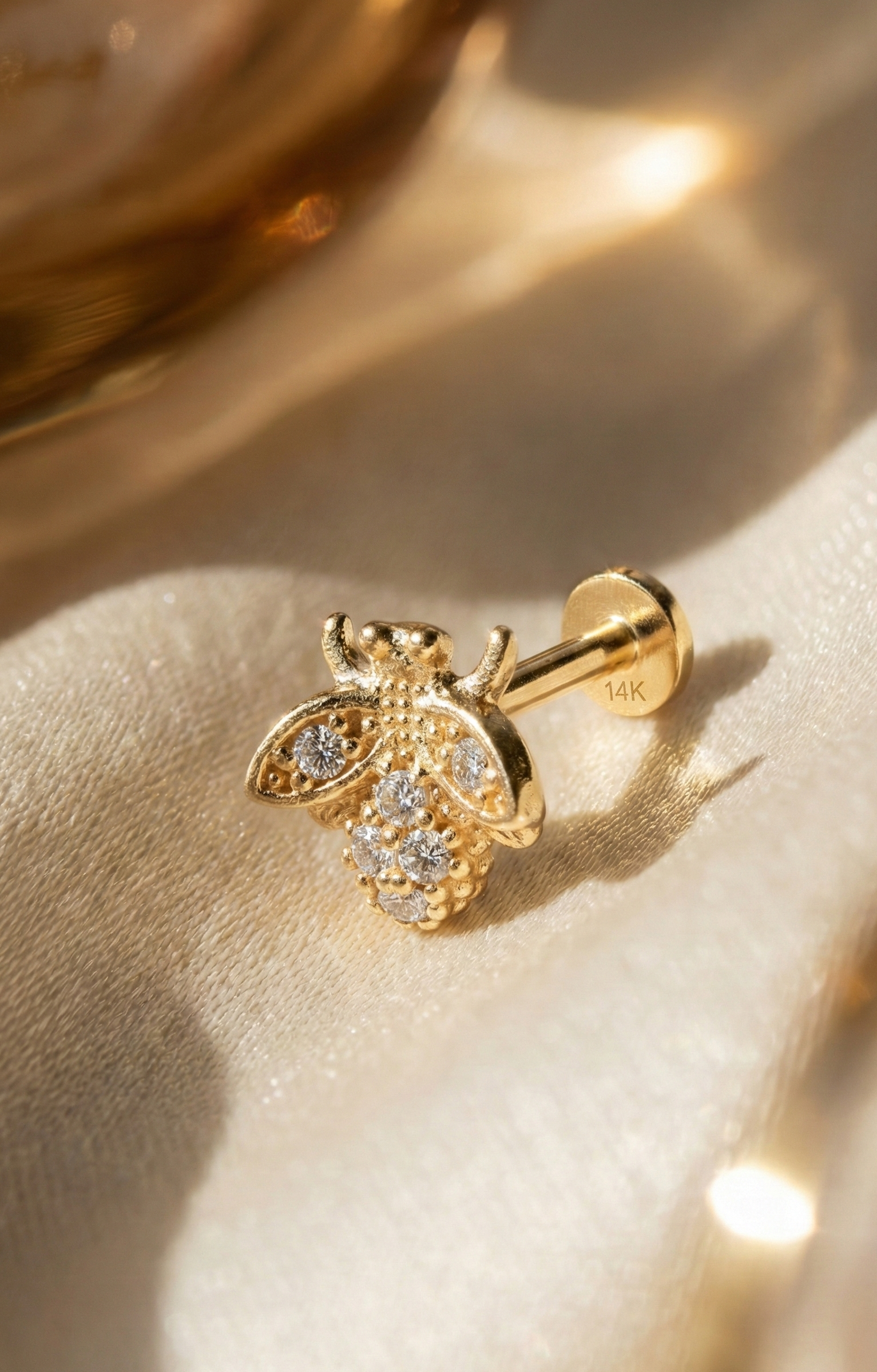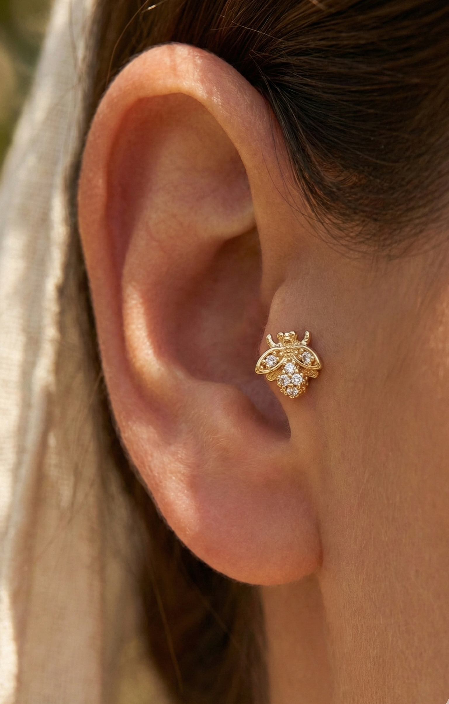 Orecchino Piercing Trago Ape in Oro Massiccio 14K - Delicato Perno per Cartilagine