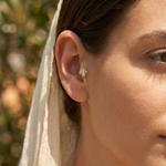Elevate your style with this solid 14K gold bee earring, adorned with sparkling zircon crystals for a nature-inspired touch. It’s perfect for a delicate cartilage or tragus piercing.